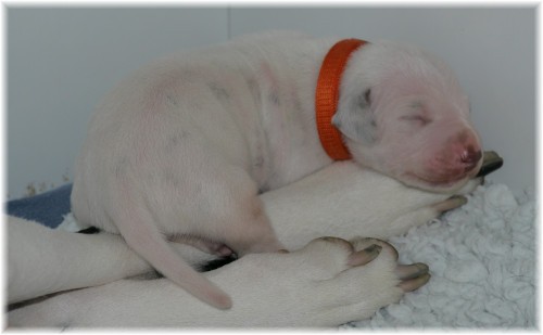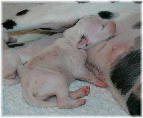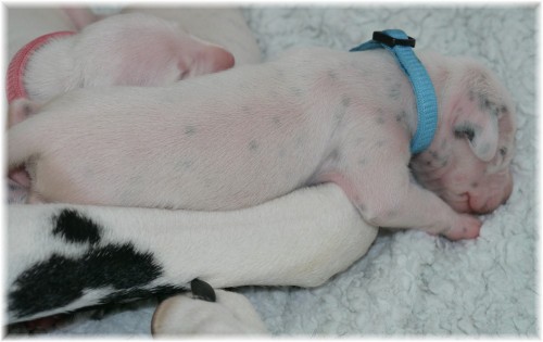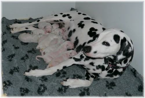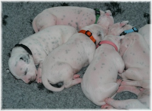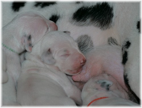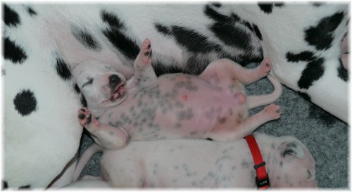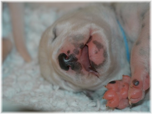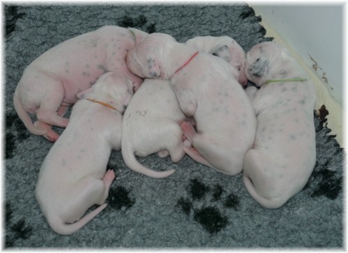 rundum zufrieden sind. Die Fleckung wird immer deutlicher sichtbar und auch die Aktivitäten unserer Sprösslinge nehmen zu. Am 5. Lebenstag wurden zum ersten Mal die 162 (!!!) kleinen Krallen geschnitten... eine