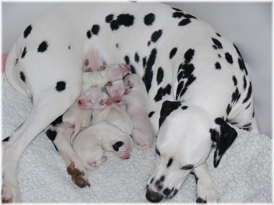 Gegen 21.00 Uhr hatte das Warten ein Ende: Emmas erster Sohn wurde geboren ! Gegen 1.00 Uhr war unser G-Wurf komplett.