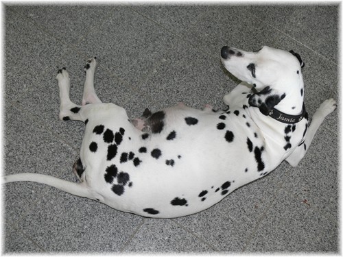 jüngste Teilnehmerin einer Dalmatinerausstellung in Hilden. Es war toll, wie selbstsicher und fröhlich sie die Anwesenheit von 100 anderen Dalmatinern nebst zugehöriger Zweibeiner genossen hat.