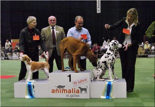 auf einer Regionalausstellung. Balou wurde Bester Rüde, Major Tom als Sieger der Zwischenklasse zweitbester Rüde. Kalua sicherte sich währenddessen in Kroatien an drei aufeinanderfolgenden Tagen als Beste