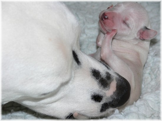 an dem sie vor ca. zweieinhalb Jahren selbst geboren wurde, unseren G-Wurf zur Welt. Wir freuen uns über drei Rüden und zwei Hündinnen, welche sich - samt ihrer Mutter - bester Gesundheit erfreuen. Die Geburt