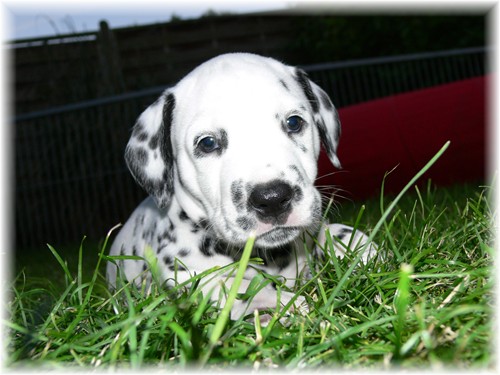 Mit entsprechendem Schwung wurde bei dem schönen Wetter durch den Garten getobt. Jaschis und Jamies großes Kunststoffkörbchen haben wir zweckentfremdet und den kleinen Wilden als Badewanne in den Welpenauslauf