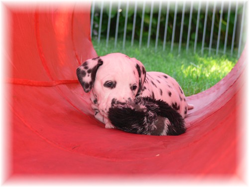 vorerst nur zögerlich genutzt. Die Sandmuschel hingegen erfreut sich hoher Beliebtheit. Die heißen Mittagsstunden verbringen die Kleinen gern im kühlen Welpenhaus - dafür wird dann abends ordentlich aufgedreht. Das ist spannender als jedes Fußballspiel...