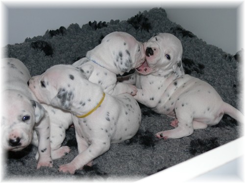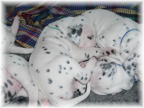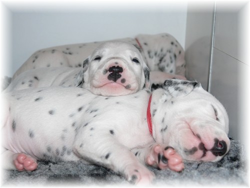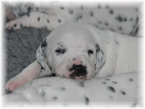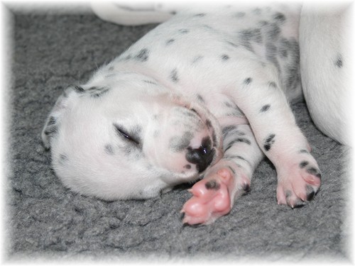 braune Augen haben. Die Fleckung tritt immer deutlicher zu Tage und auch die Aktivitäten der kleinen Racker nehmen täglich zu. Zum Fotografieren eignen sich die regelmäßigen Schlafphasen aber irgendwie besser... :-)