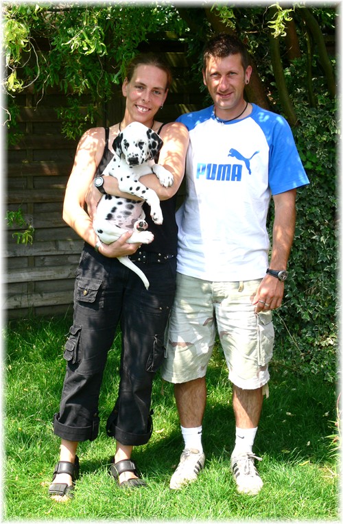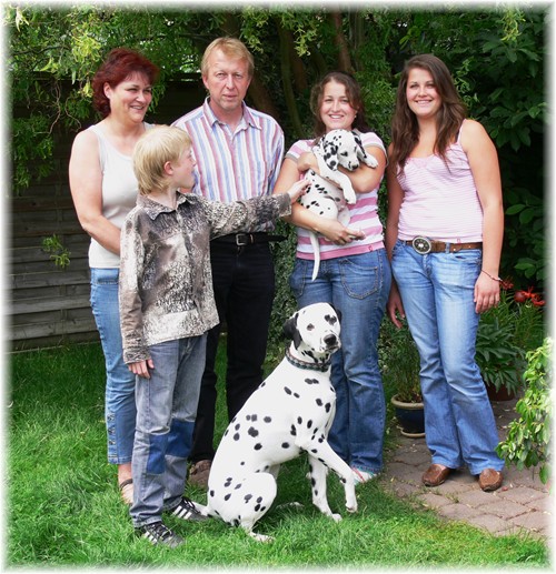 Liebe auf den ersten Blick - wenn auch erst beim zweiten Besuch. In Vogue wird in Zukunft als LUCKY bei Familie Maké aus Bielefeld als Reitbegleithund ein tolles Dalmatinerleben führen.