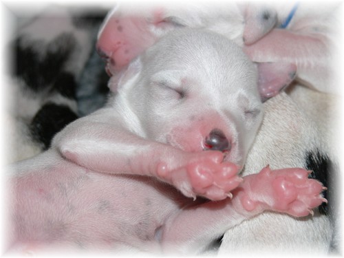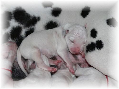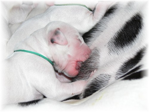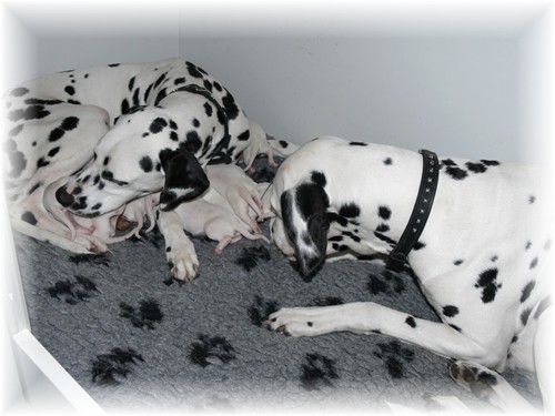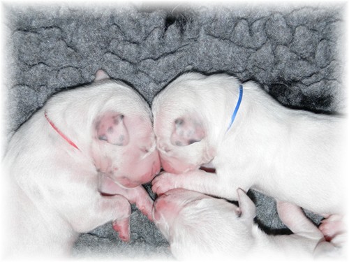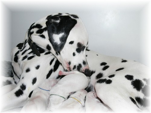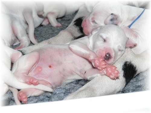 an dem sie vor etwa zweieindreiviertel Jahren selbst geboren wurde, unseren I-Wurf zur Welt. Wir freuen uns über sieben weiß-schwarze Rüden und drei weiß-schwarze Hündinnen, welche sich - samt ihrer Mutter - bester