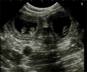 Wahrheit: Tammy - immer noch mit Idealfigur - wurde der Tierärztin vorgestellt, um sich einer Ultraschalluntersuchung zu unterziehen. In diesem Stadium ist einer trächtigen Hündin