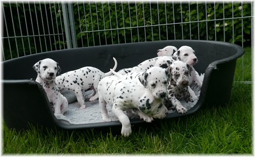 wurde viel geknuddelt und geschmust - natürlich auch mit den drei erwachsenen Tupfentanten. In der Wurfkiste wurde es aufgrund der stetigen Größen- und Gewichtszunahme unserer Süßen allmählich richtig eng.