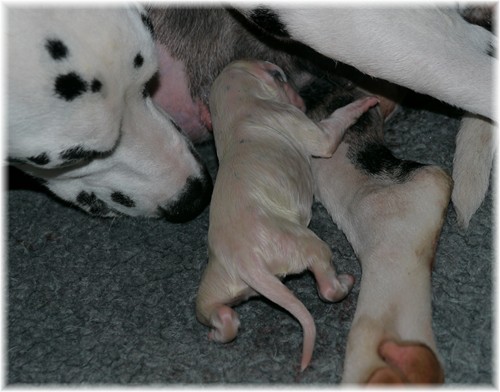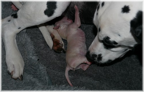 die Geburt ohne Probleme überstanden hat - gehört doch die größte Sorge eines Züchters während der Geburt immer wieder der werdenden Mutter.