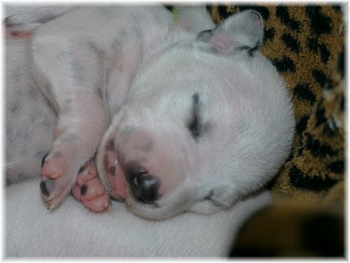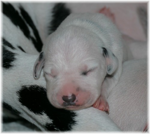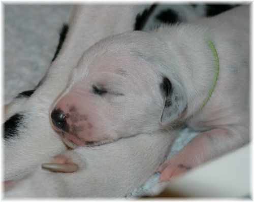 rundum zufrieden sind. Die Fleckung wird immer deutlicher sichtbar und auch die Aktivitäten unserer Sprösslinge nehmen zu. Am 5. Lebenstag wurden zum ersten Mal die 162 (!!!) kleinen Krallen geschnitten... eine